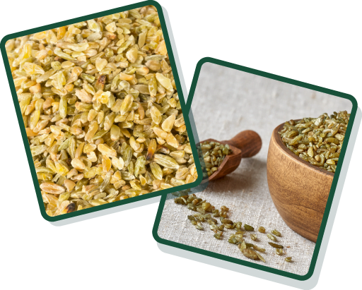 Freekeh is a whole grain cereal with a fluffy, chewy texture and smoky flavour. Freekeh is made by harvesting green durum wheat before the grains are fully ripe. The kernels are then roasted and rubbed, giving them a distinct smoky, nutty flavour. They are usually cracked into smaller pieces, which improves the texture and shortens the cooking time.